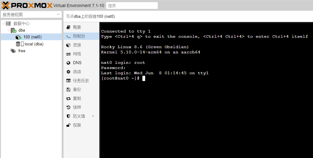 由于这些镜像均为纯净版镜像,纯净到连 SSH 都没内置,首先将小鸡开机,并进入 控制台,使用设置的 root 密码登录: