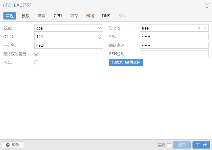 输入 root 用户密码 - 选择系统镜像 - 磁盘、CPU、内存按需填写,网络部分按下方填写: