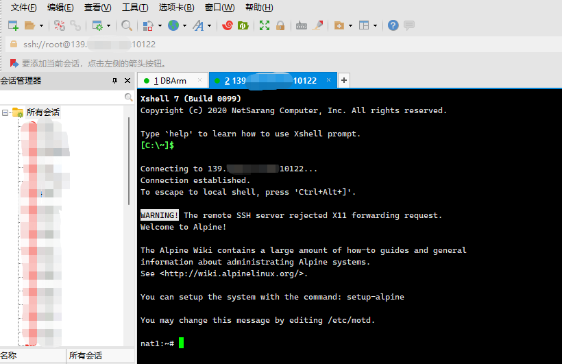 现在测试通过本地终端访问 公网IP:10122 是否能连接: